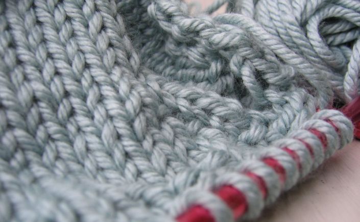 M1R : « Avec l’aig. gauche, prendre par derrière le brin horizontal entre la maille tricotée et la suivante et la tricoter comme une maille endroit. »